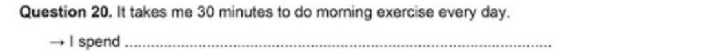 Question `20`: It takes me `30` minutes to do moring exercise every day