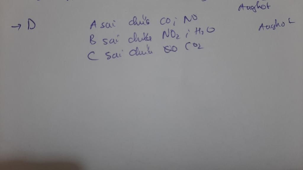 `A.` Loại vì `NO,CO` là `2` oxide trung tính và `SO_2` là oxide acid