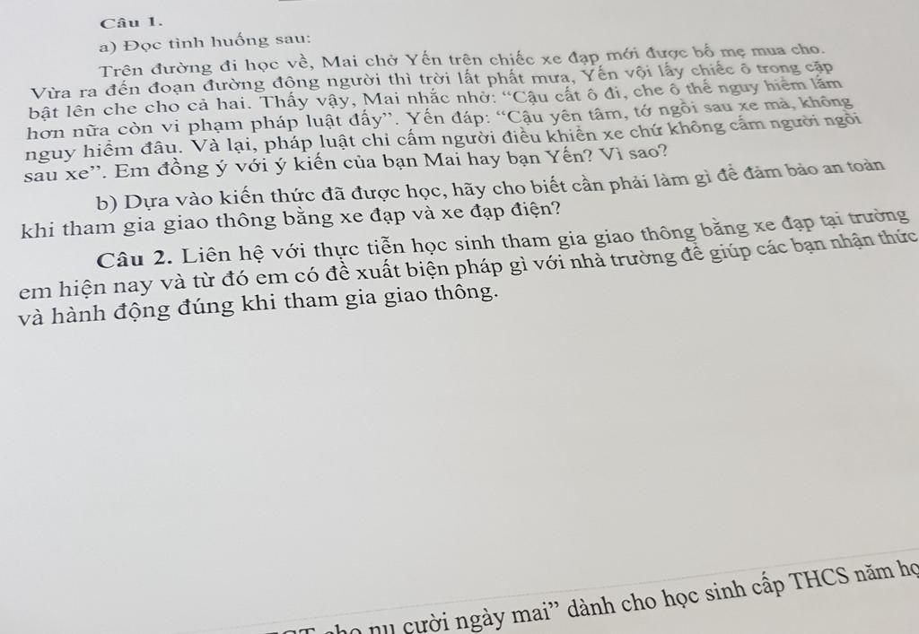 `b`) Cần đảm bảo giao thông khi tham gia giao thông bằng xe đạp và xe đạp điện là:
