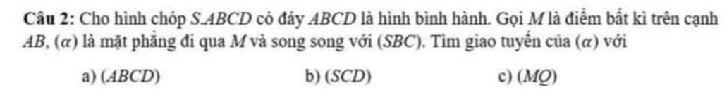 Vì $(\alpha)//(SBC), M\in (\alpha)$