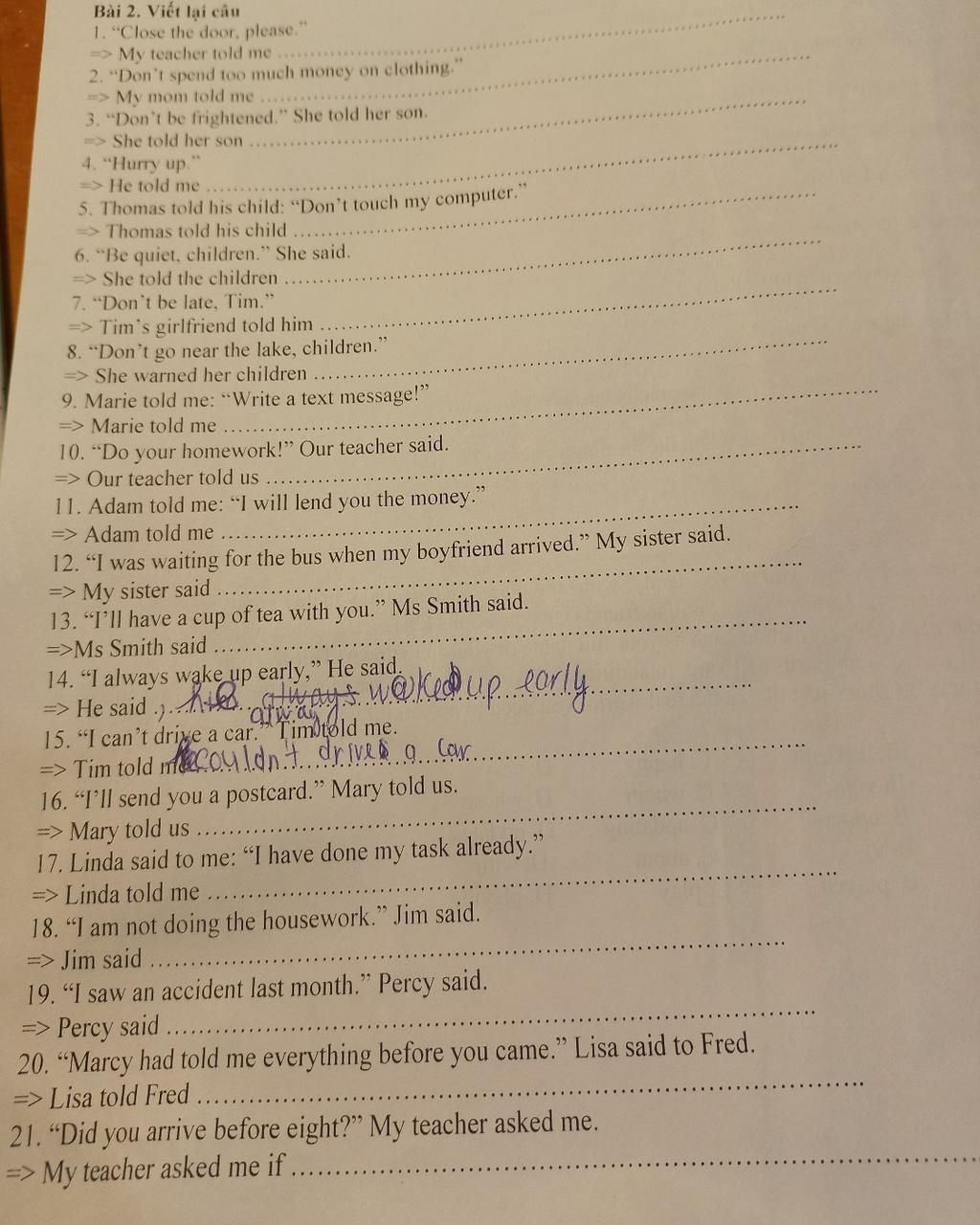 Tường thuật mệnh lệnh: S + told sb ( not ) + to do sth ( Bảo ai làm gì ..)