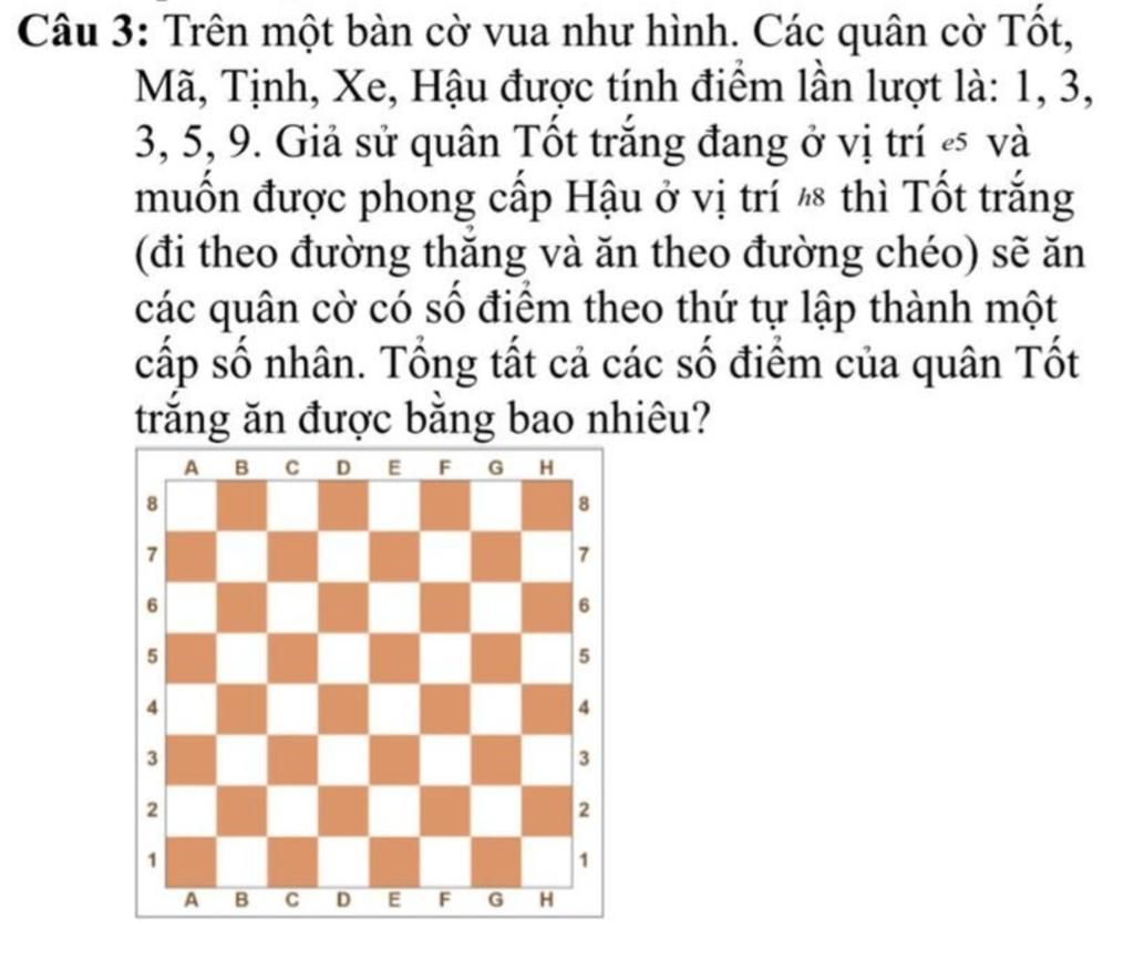 `→` Tổng số điểm mà quân Tốt trắng ăn được: `1+3+9=13` điểm