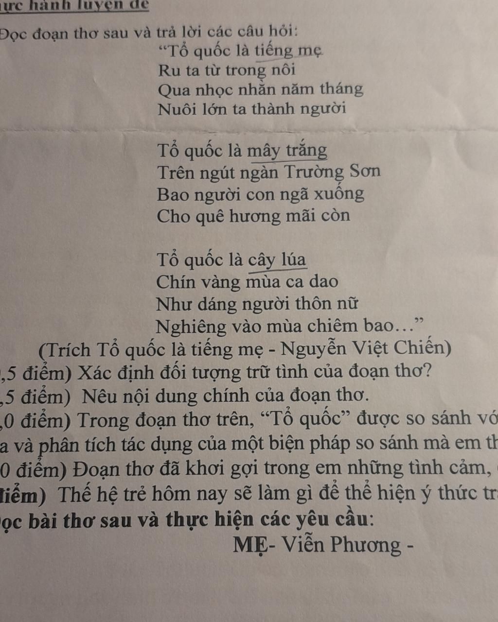 Viết cảm nghĩ của em về bài thơ Mẹ của tác giả Viễn Phương (Không Mạng)