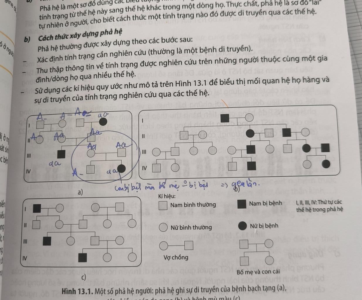 b) Cách thức xây dựng phả hệ