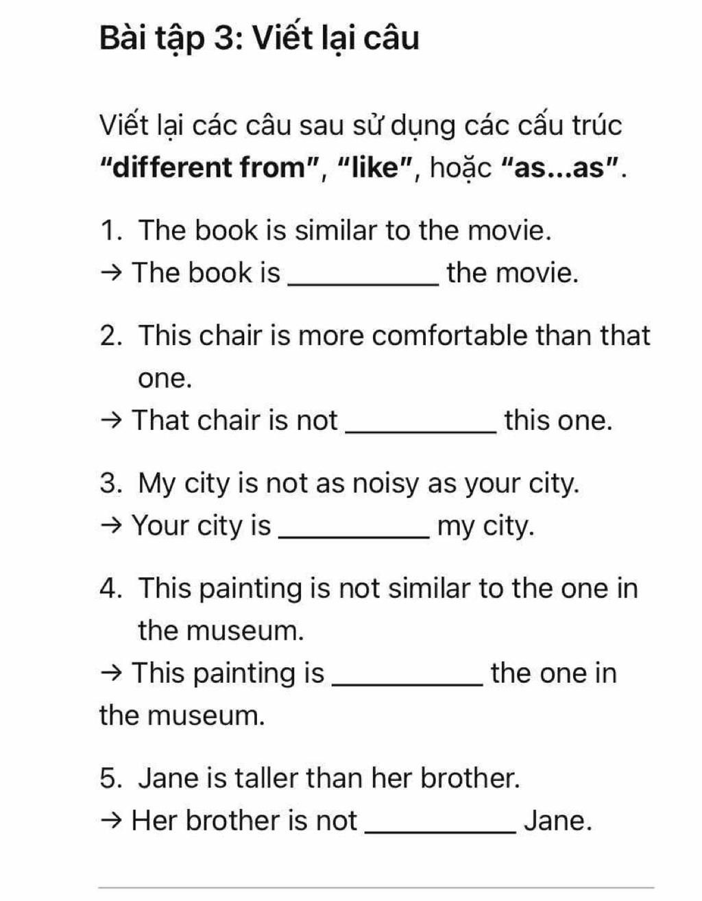 `=` So sánh ngang bằng : S2 + be not + as/so + adj + as + S1 : Cái gì không bằng....