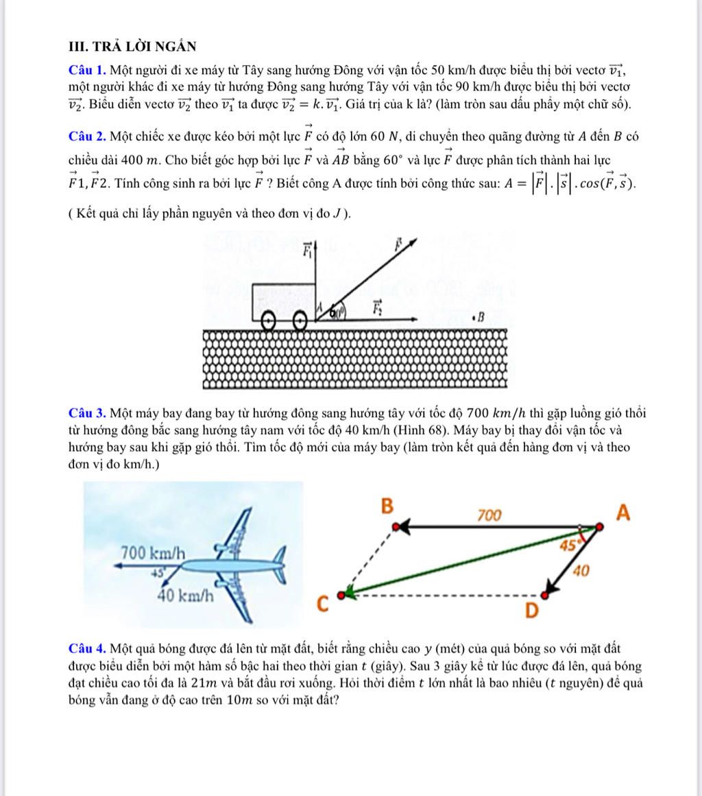 Câu 1. Một người đi xe máy từ Tây sang hướng Đông với vận tốc 50 km/h được biểu thị bởi vectơ vị,