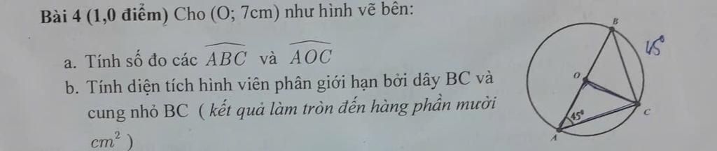 xét ( O;ab/2) suy ra oa=ob=oc