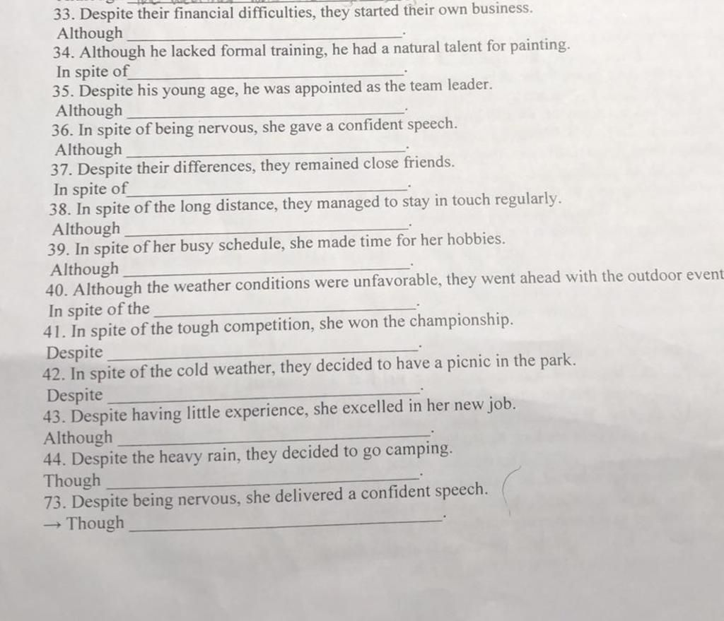 `42.` Despite the cold weather, they decided to have a picnic in the park.