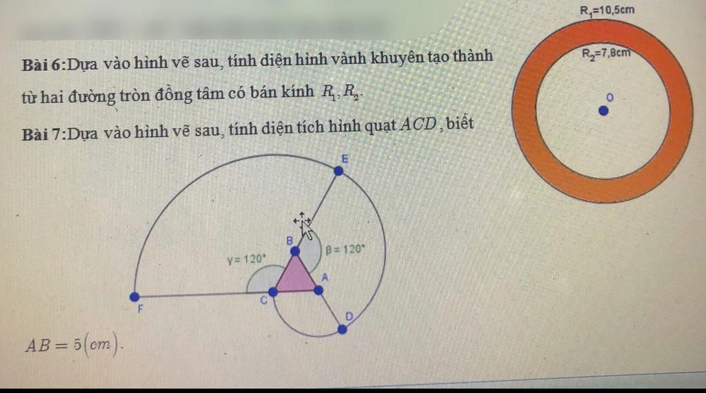 Bài 6:Dựa vào hình vẽ sau, tính diện hình vành khuyên tạo thành