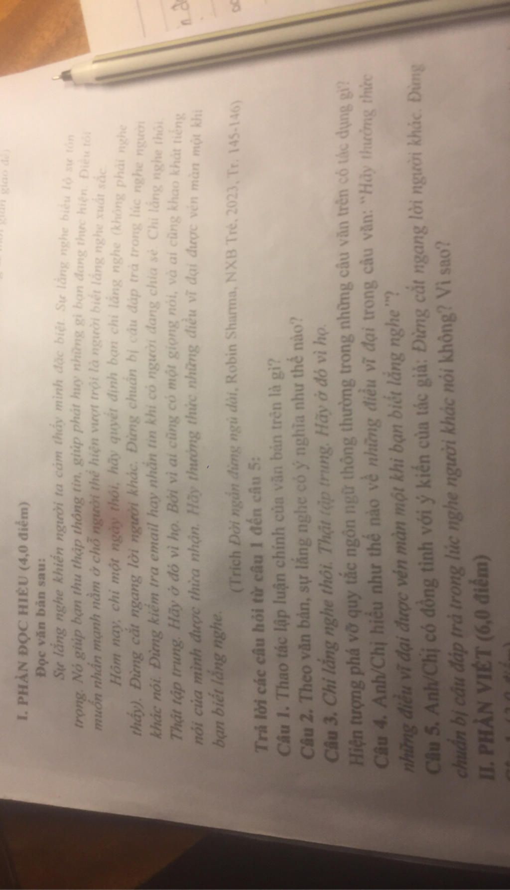 I. PHẦN ĐỌC HIỆU (4,0 điểm)
