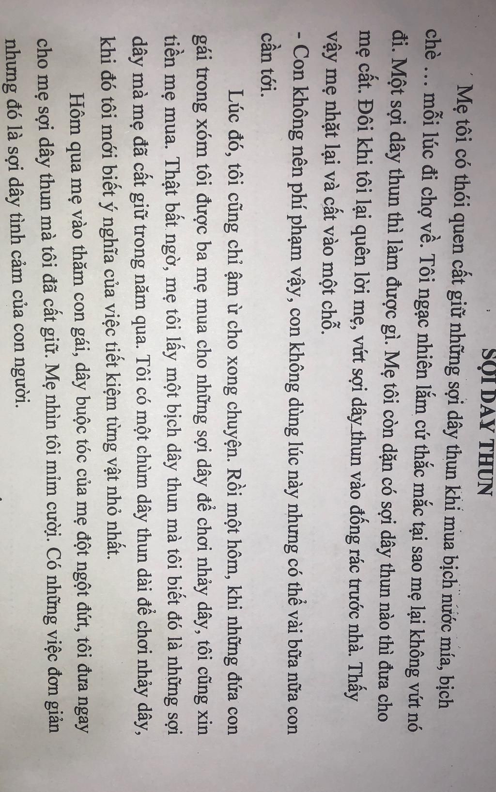 Trong đoạn trích, người mẹ hiện lên là một người phụ nữ giản dị, tiết kiệm và đầy tình yêu thương dành cho con cái. Hành động cất giữ từng sợi dây thun của bà không chỉ thể hiện thói quen tiết kiệm mà còn cho thấy sự trân trọng những điều nhỏ bé trong cuộc sống. Với bà, sợi dây thun tuy nhỏ nhưng lại hữu ích, có thể dùng vào những lúc cần thiết. Sự chu đáo của mẹ còn thể hiện qua cách bà nhẹ nhàng nhắc nhở con: “Con không nên phí phạm vậy, con không dùng lúc này nhưng có thể vài bữa nữa con cần tới.” Lời nói ấy không chỉ dạy con thói quen tiết kiệm mà còn hàm chứa bài học sâu sắc về việc biết trân trọng mọi thứ xung quanh. Tình yêu của người mẹ trong đoạn trích không phô trương, không hoa mỹ, mà ẩn chứa trong những hành động âm thầm, nhỏ nhặt. Qua hình ảnh người mẹ, tác giả đã khắc họa một tấm gương sáng về sự hy sinh và tình yêu thương, nhắc nhở chúng ta biết quý trọng và yêu thương những người thân yêu trong cuộc sống.