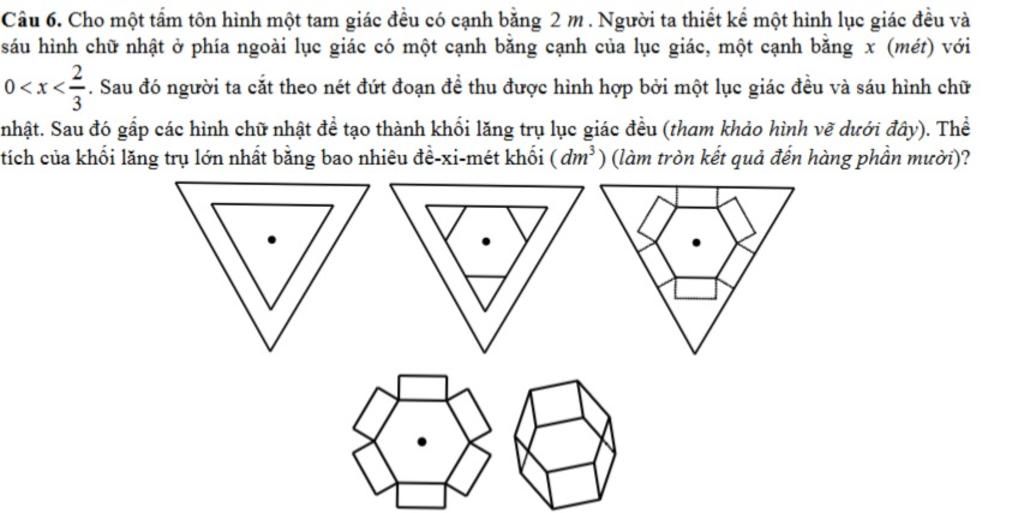 $V=\dfrac{3\sqrt3x^2}2\cdot (\dfrac{\sqrt3}3-\dfrac{x\sqrt3}2)$