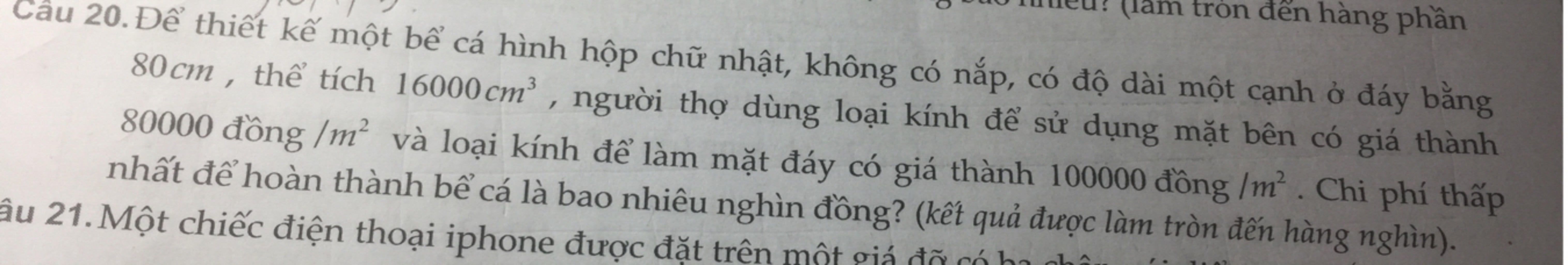 Chi phí `C(x)=100000*S_("đáy")+80000* S_("xung quanh")`