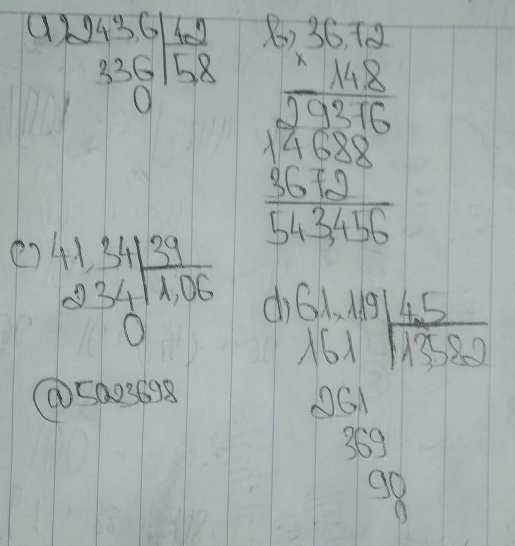 a) 243,6:42 b)36,72nhân14,8