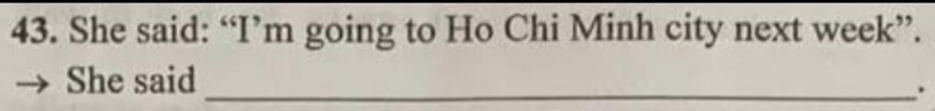 `43,` She said that she was going to Ho Chi Minh city the following week.