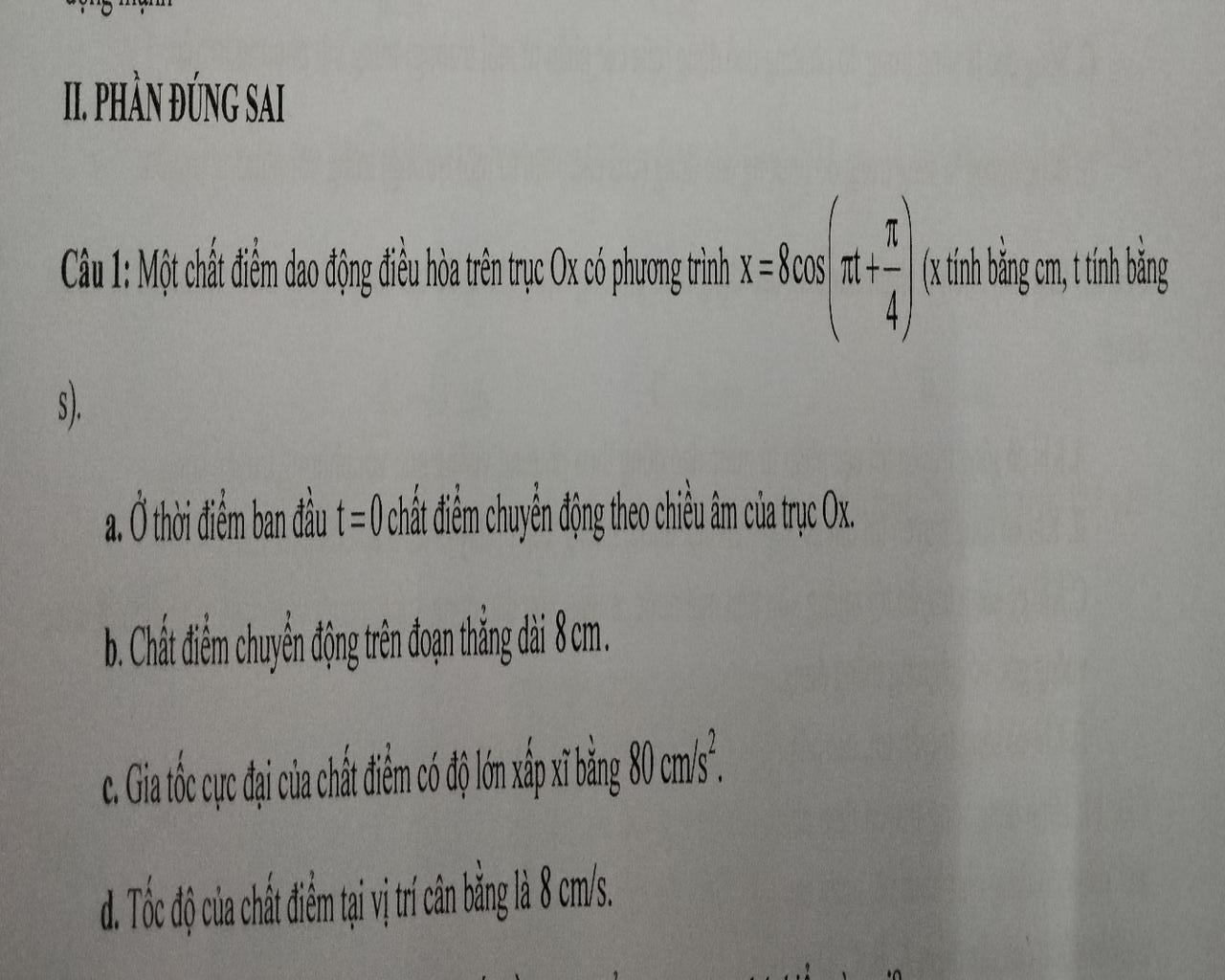 a) Do \({\varphi _0} = \dfrac{\pi }{4} > 0 \Rightarrow \) vật chuyển động theo chiều âm