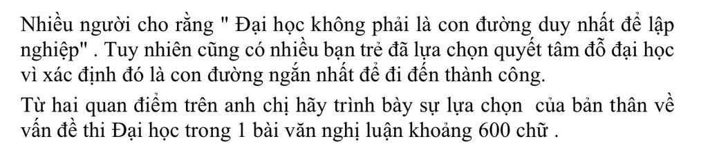 nghiệp" . Tuy nhiên cũng có nhiều bạn trẻ đã lựa chọn quyết tâm đỗ đại học