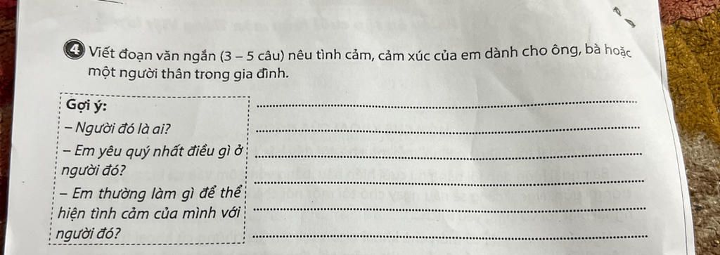 Viết 3-5 câu nêu tình cảm , cảm xúc của em dành cho ông , bà hoặc một người thân trong gia đình