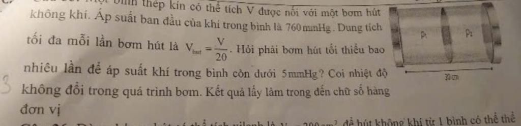 Vậy sau tối thiểu `98` lần bơm thì áp suất khí giảm còn dưới `5mmHg.`
