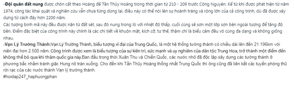 `+` Là một trong những kỳ quan vĩ đại của thế giới, được xây dựng để bảo vệ Trung Quốc khỏi các cuộc xâm lăng từ phương Bắc