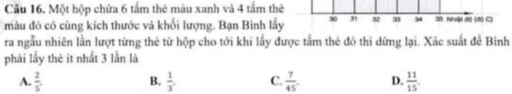 Xác suất để Bình phải lấy thẻ ít nhất $3$ lần là: