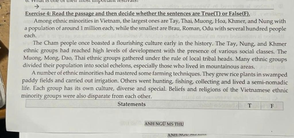 Dẫn chứng:"Among ethnic minorities.....people each"