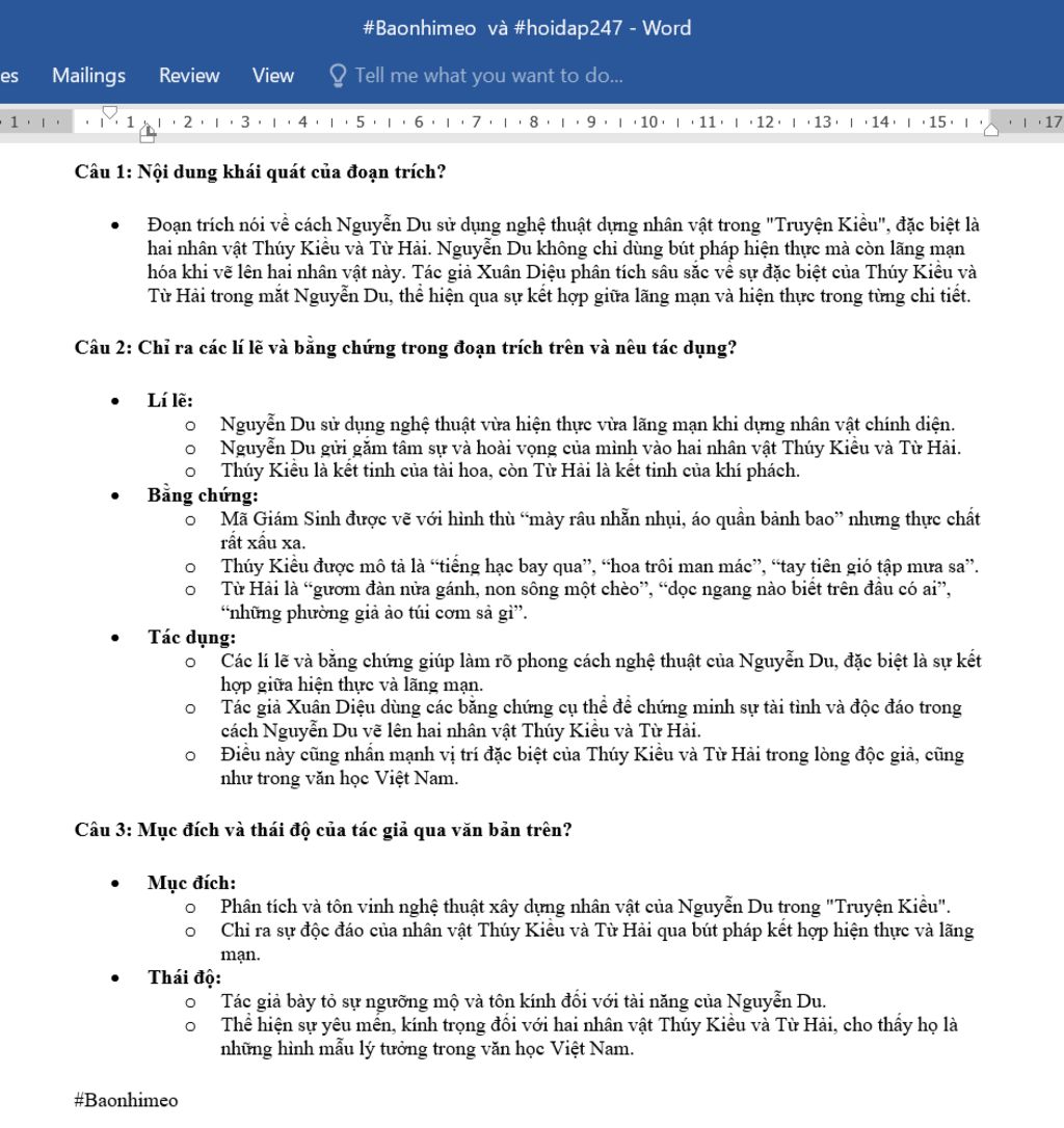 `+` Làm rõ nghệ thuật xây dựng nhân vật Thuý Kiều và Từ Hải của tác giả Nguyễn Du