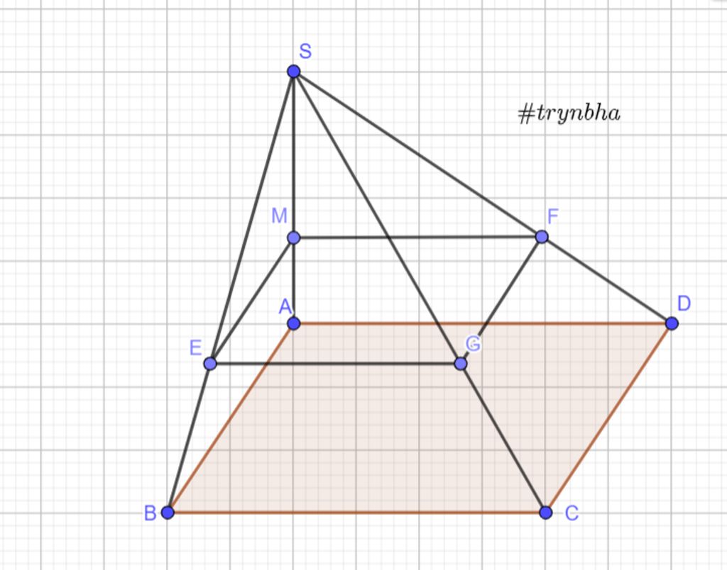Trong `(SAB)` gọi `E∈SB(ME``/``/``AB)`