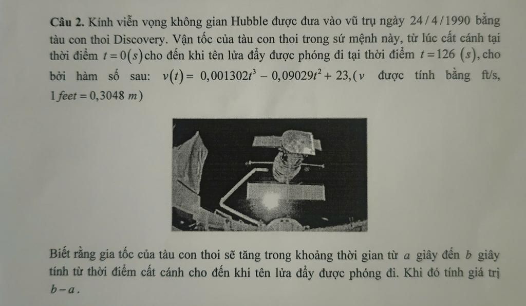 Câu 2. Kính viễn vọng không gian Hubble được đưa vào vũ trụ ngày 24/4/1990 bằng