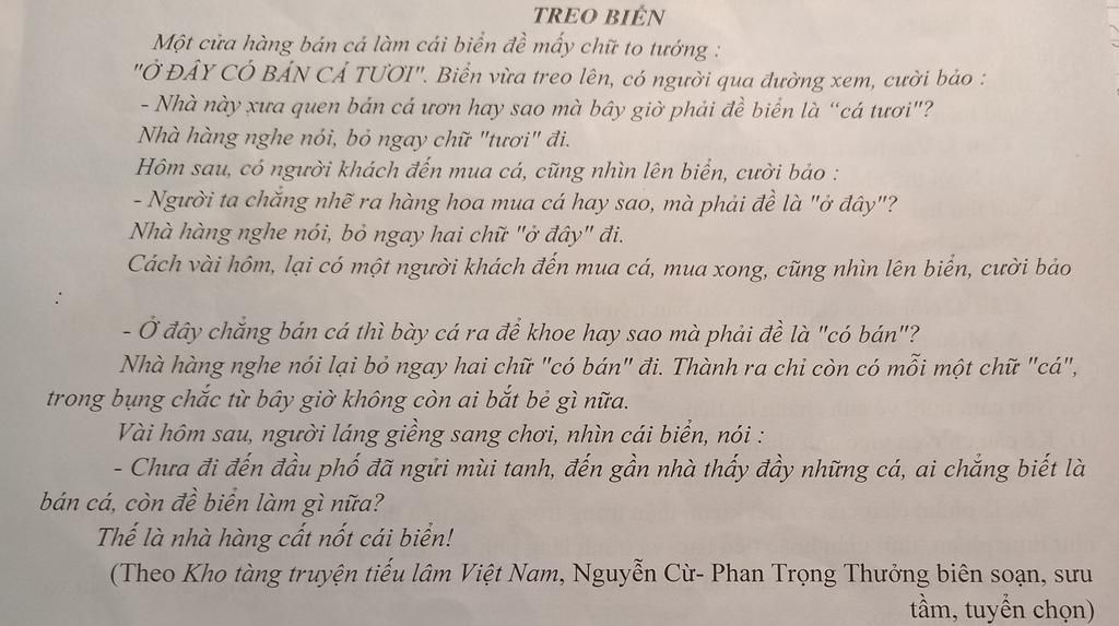 Câu 9: Nêu một số đặc điểm nổi bật của truyện cười thể hiện qua văn bản Treo biển. Câu 10: Theo em, chi tiết nào đáng cười nhất trong truyện Treo biển? Vì sao? biển để làm