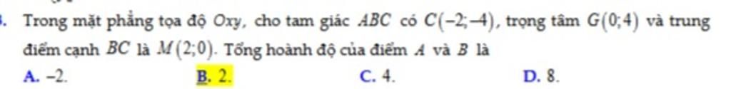 Do đó, $\rm x_A+x_B=-4+6=2$