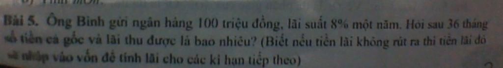Vậy sau `36` tháng số tiền cả gốc và lãi thu được là `125,9712` triệu đồng