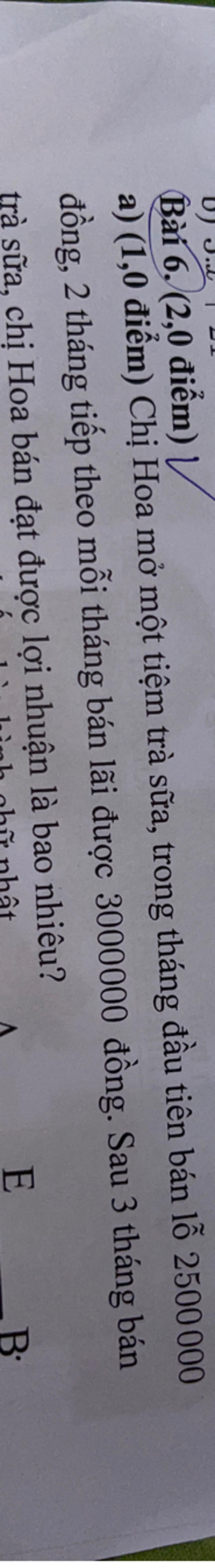 `->` vậy sau 3 tháng bán trà sữa, chị Hoa có lợi nhuận `3500000` đồng