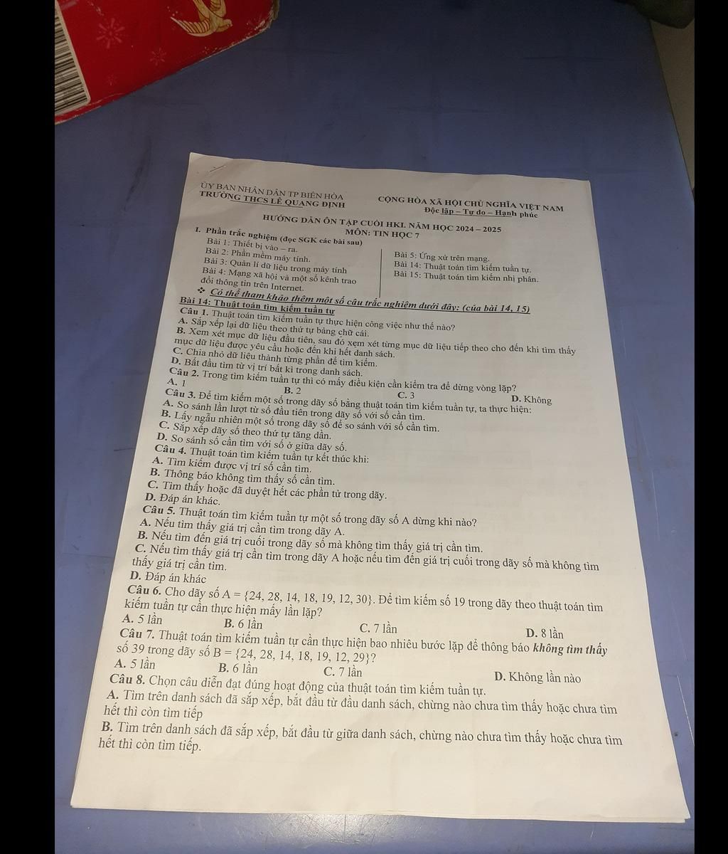 HƯỚNG DẪN ÔN TẬP CUỐI HKI NĂM HỌC 2024 – 2025