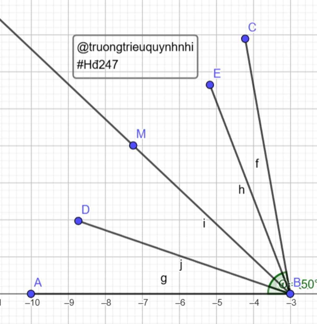 nếu đc cou bổ sung thêm aa nên `hat{DOE}` nằm trong `hat{AOC}` mà `hat{DOE}` có tia `BM` nằm trong nên `hat{AOC}` có tia `BM` là tia nằm trong Vậy `M` là điểm trong chung của `hat{AOC}` và `hat{DOE}`