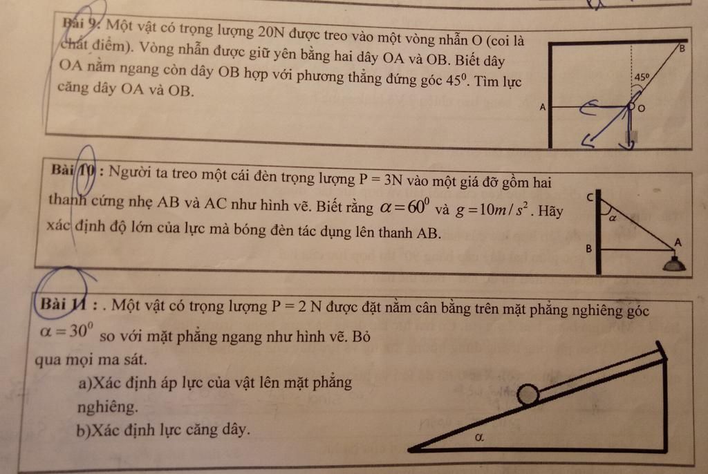 Bài 9. Một vật có trọng lượng 20N được treo vào một vòng nhẫn O (coi là