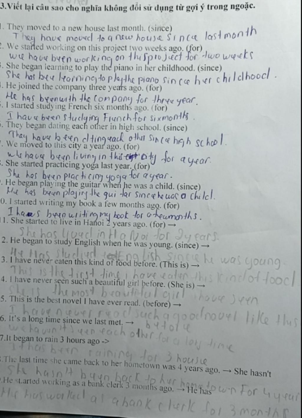3.Viết lại câu sao cho nghĩa không đổi sử dụng từ gợi ý trong ngoặc.