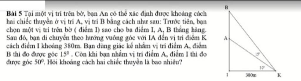 `IK=380m; \hat{AKI}=50°;\hat{AKB}=15°`
