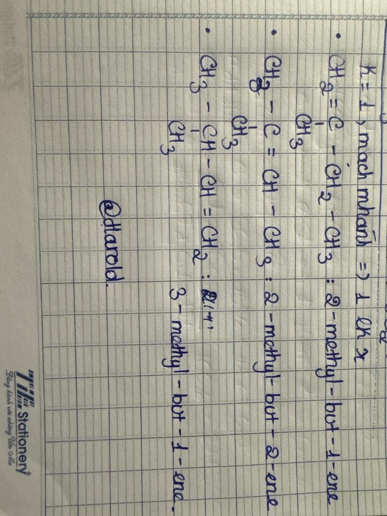 Tổng số đồng phân mạch nhánh của C5H10 là?