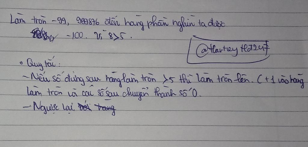 làm tròn số -99,999876 đến hàng phần nghìn được kết quả là