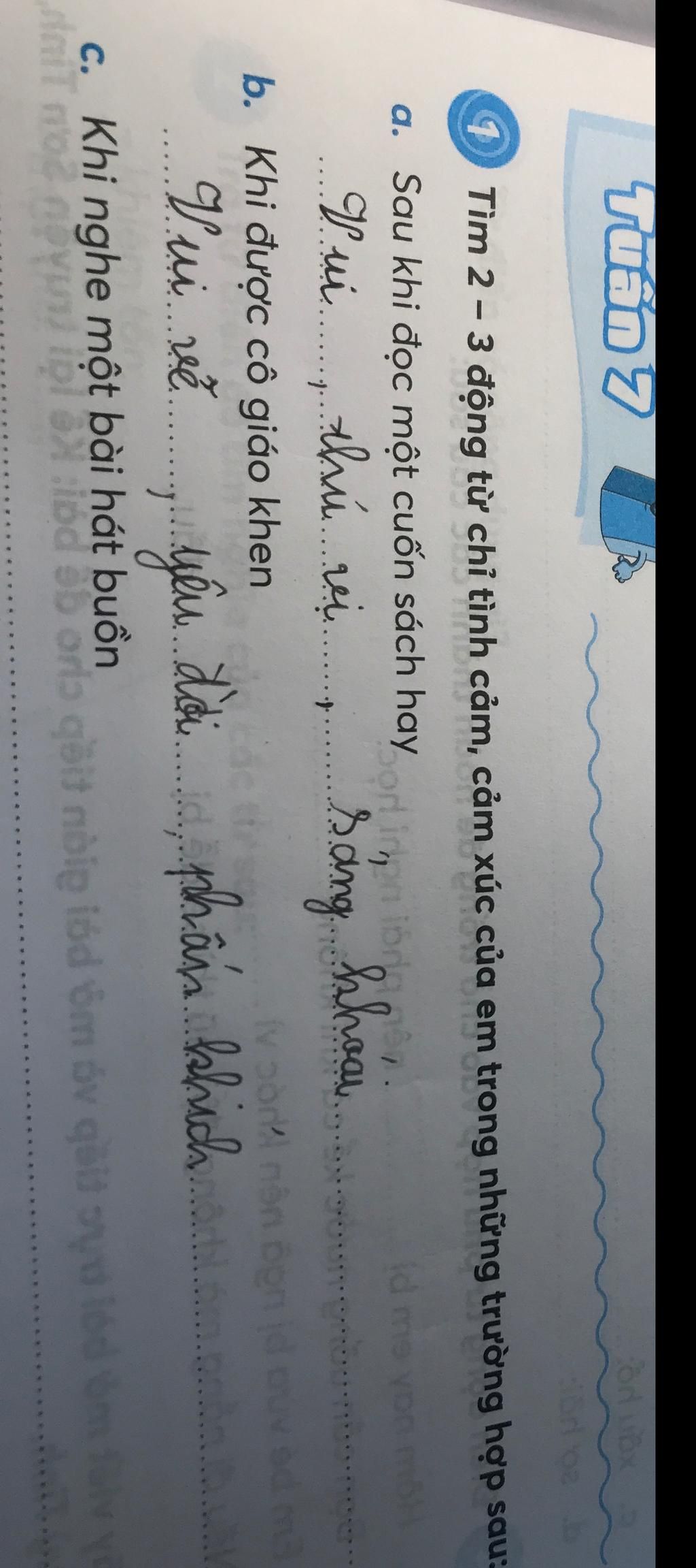 1 Tìm 2 – 3 động từ chỉ tình cảm, cảm xúc của em trong những trường hợp sau: