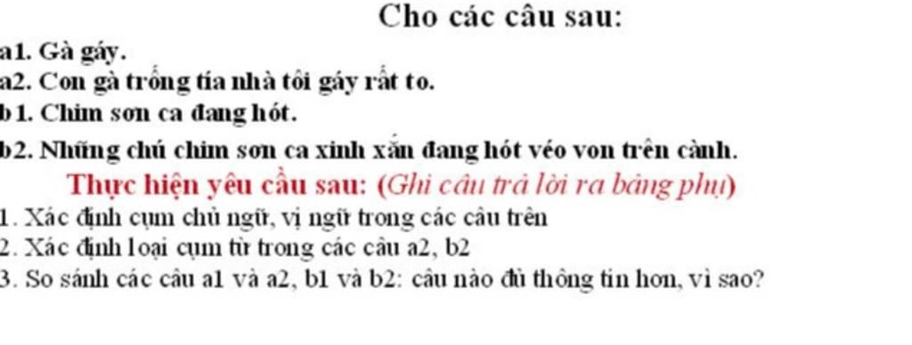 `-` Trong các câu, câu `a,2` và `b,2` đầy đủ thông tin hơn. Vì mỗi phần CN, VN đều được mở rộng bằng các cụm từ nhằm bố sung, diễn tả đầy đủ thông tin hơn về sự việc xảy ra trong câu nên chúng mang ý nghĩa đầy đủ hơn so với hai câu còn lại.