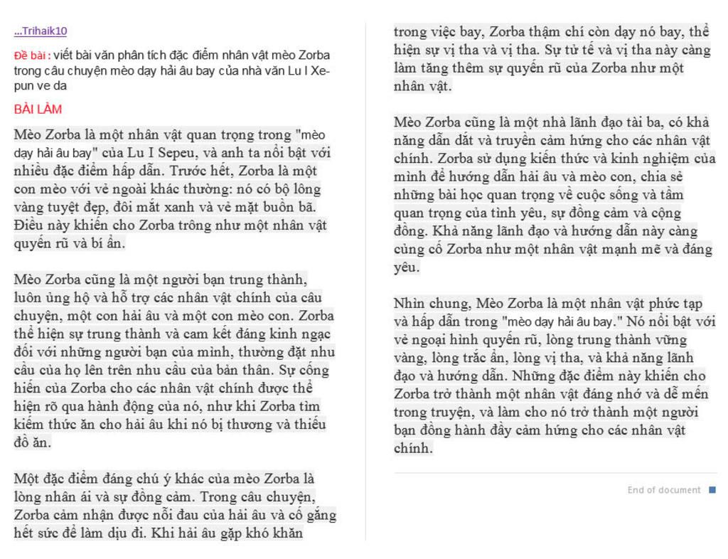 viết bài văn phân tích đặc điểm nhân vật mèo Zorba trong câu chuyện mèo dạy hải âu baycủa nhà văn Lu I Xe-pun ve da