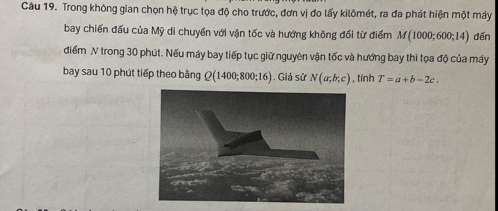 Vì máy bay di chuyển có hướng không đổi nên `vec(MN)=kvec(NQ)`