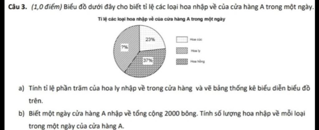 a, Tỉ lệ phần trăm của hoa ly nhập về trong cửa hàng là : 100% - 37% -23% = 40%
