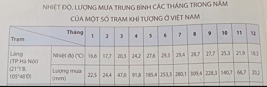 Nhiệt độ (°C) | 16,6 | 17,7 | 20,3 | 24,2 | 27,6 | 29,3 | 294 | 28,7 27,7 | 25,3 21,9 18,3