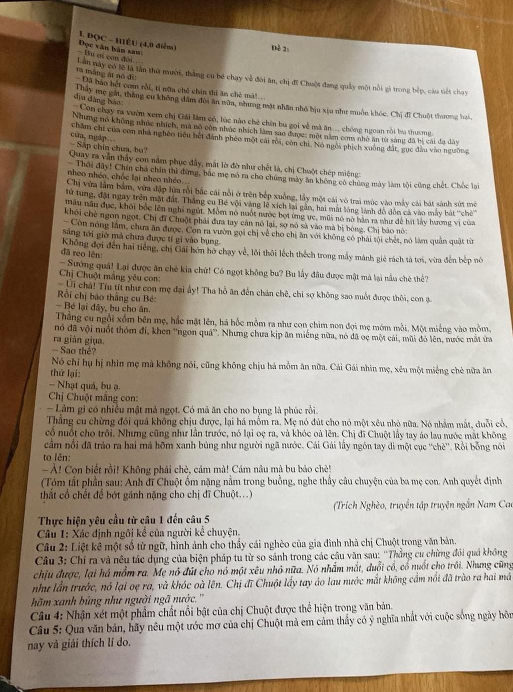 Lần này có lẽ là lần thứ mười, thằng cụ bẻ chạy về đòi ăn, chị đi Chuột đang quấy một nồi gì trong bếp, cầu tiết chạy