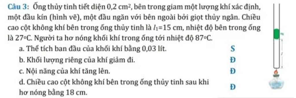 c) Do nhiệt độ tăng nên nội năng của chất khi tăng.