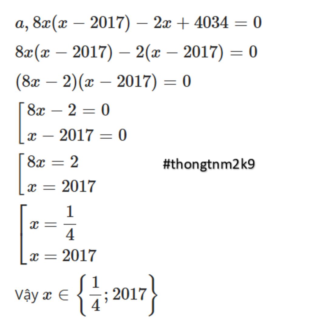`8x -2 = 0` hoặc `x- 2017 = 0`
