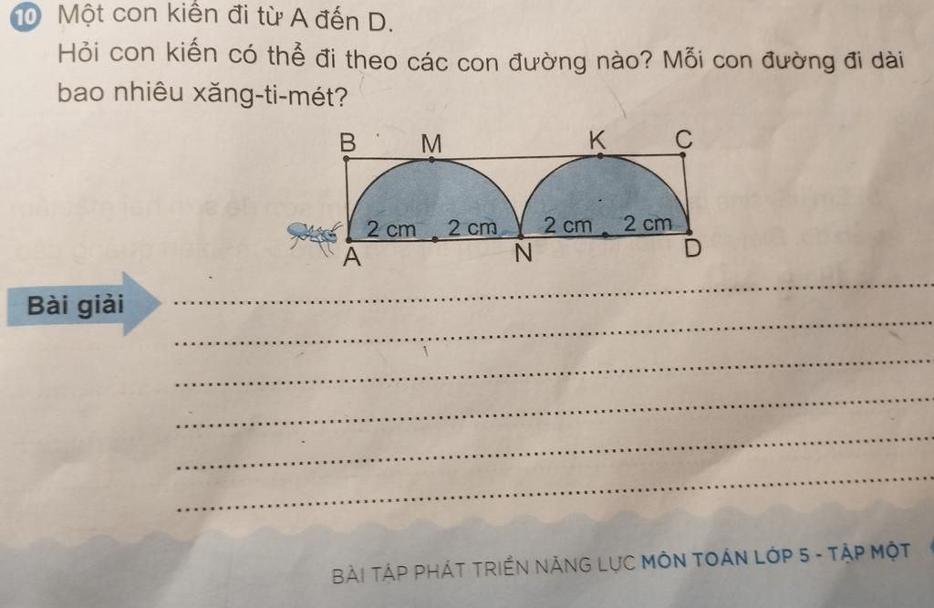 Độ dài con đường `AB->BM->MK->KC->CD` là`:`